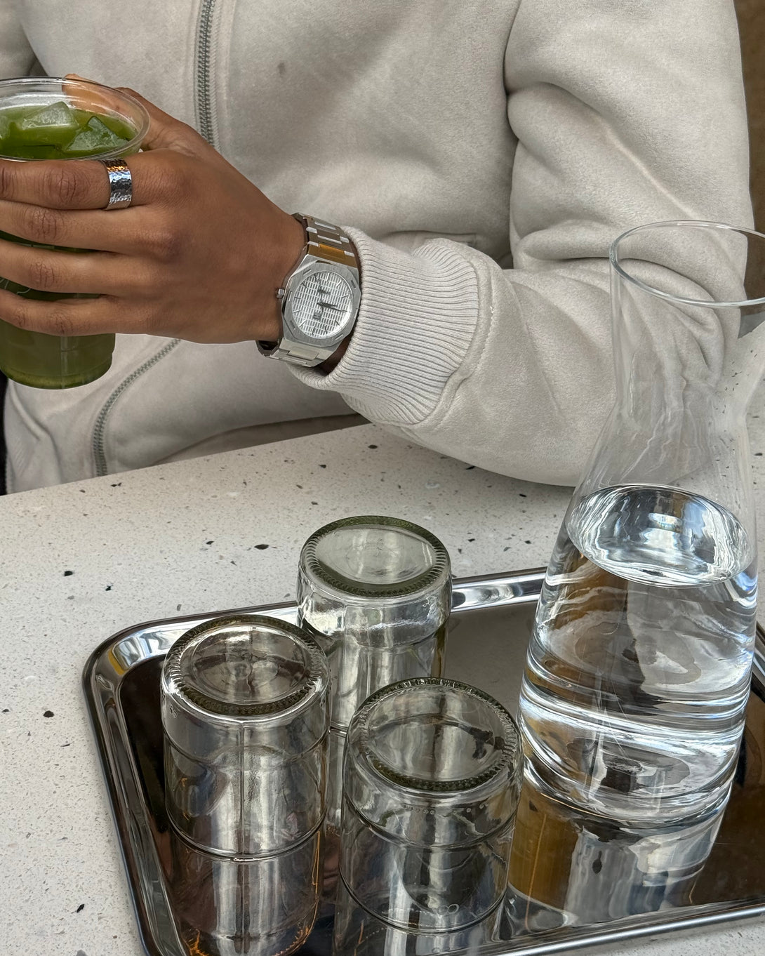 Stainless Steel Case & Bracelet: A polished 40mm stainless steel case seamlessly paired with a matching bracelet. The center links feature a glossy, polished finish, adding a subtle shine and an extra touch of sophistication to the design.